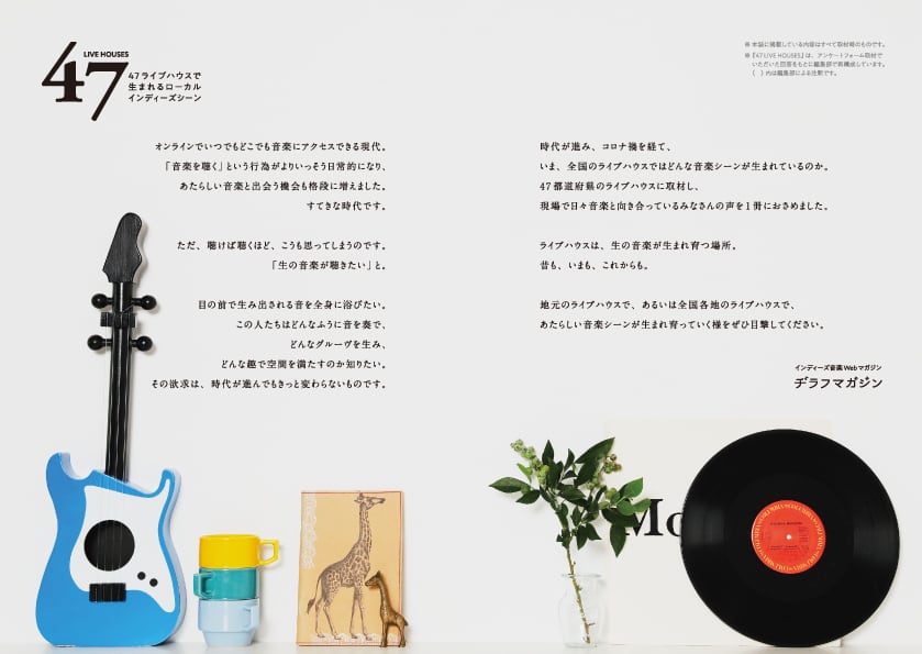 47都道府県のライブハウスに取材し、地元の音楽シーンや注目アーティスト、新人・若手アーティストへのアドバイス、今後のビジョンなどを伺いました。